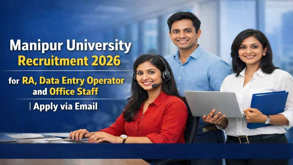 Ans: Manipur University Recruitment 2026 is a project staff recruitment for Research Assistant, Data Entry Operator, and Office Staff posts.